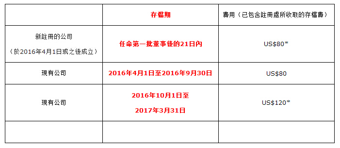1. 2016年4月1日起,BVI新設(shè)費(fèi)用。在現(xiàn)有的費(fèi)用上增加一個(gè)董事名冊(cè)注冊(cè)處備案費(fèi):USD80。