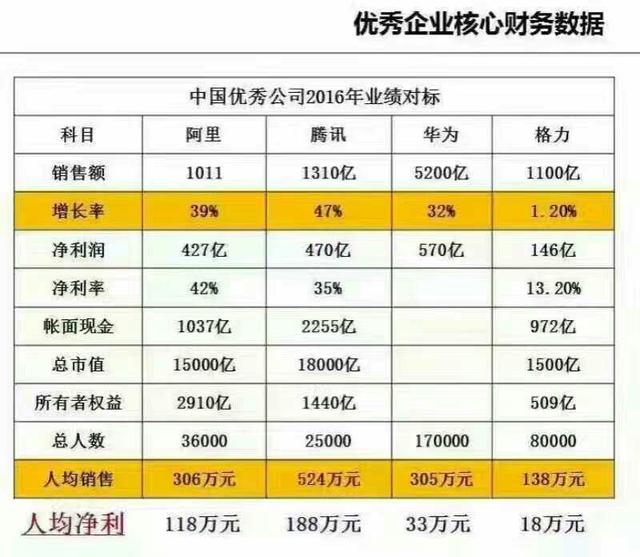 相關(guān)消息顯示,2016年的阿里、華為、騰訊、格力等優(yōu)秀企業(yè)的營(yíng)收及利潤(rùn)等數(shù)據(jù)已經(jīng)明朗,從透露的數(shù)據(jù)來(lái)看,各家有各家的優(yōu)勢(shì)。在營(yíng)收方面,華為以5200億的營(yíng)收冠絕登頂,其次是騰訊、格力與阿里。在凈利潤(rùn)方面,仍然是華為第一,凈利潤(rùn)達(dá)到579億,緊隨其后的是騰訊、阿里與格力。而在市值方面,因?yàn)槿A為沒(méi)有上市,所以只有其他三家的數(shù)據(jù),騰訊市值最高,阿里次之。不過(guò)這次統(tǒng)計(jì)并沒(méi)有把百度放進(jìn)來(lái),或許是2016年百度的表現(xiàn)差強(qiáng)人意。